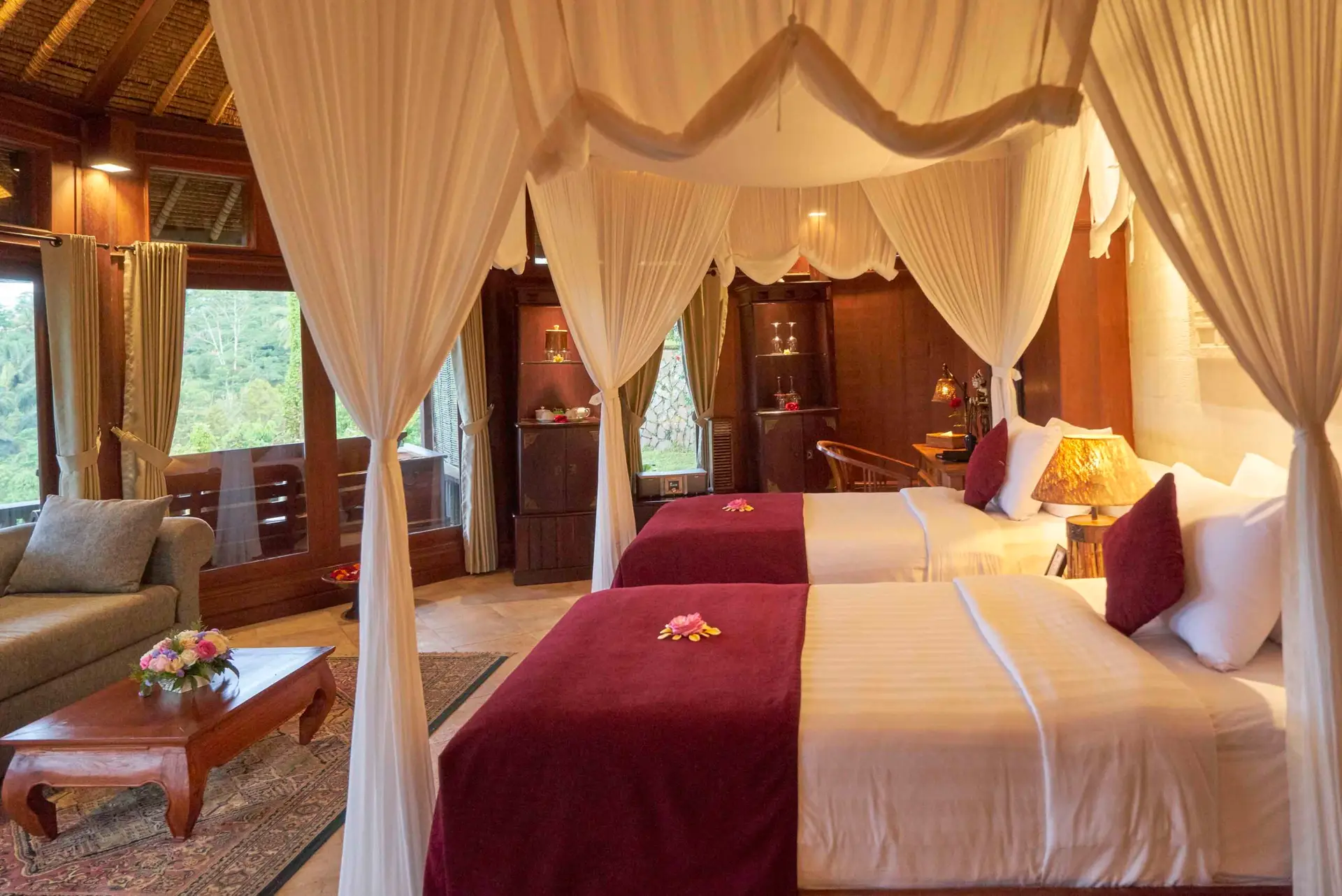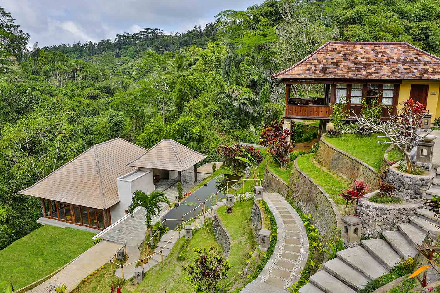 Nestled in the lush highlands of Tegallalang, Northern Ubud, Bagus Jati Resort offers a luxurious wellness retreat spread across 5 hectares of tropical hillside gardens. At 750 meters above sea level, guests enjoy fresh mountain air and panoramic views. The resort features 33 well-appointed accommodations, including villas and chalets, each with verandas overlooking the verdant surroundings. Embracing the Balinese philosophy of Tri Hita Karana, Bagus Jati provides holistic experiences such as traditional spa treatments, yoga, meditation, and organic dining, ensuring a rejuvenating stay in harmony with nature